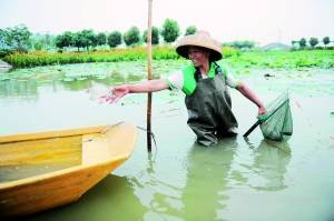 “幸運的游客可以在游船時看到漁民捉魚的情景。”蓮花水鄉(xiāng)的工作人員告訴記者,現(xiàn)在景區(qū)共有10條疍家漁船,撐船者都是當?shù)貪O民,閑暇時他們會在湖中捉魚,頗有江南魚米鄉(xiāng)之感。